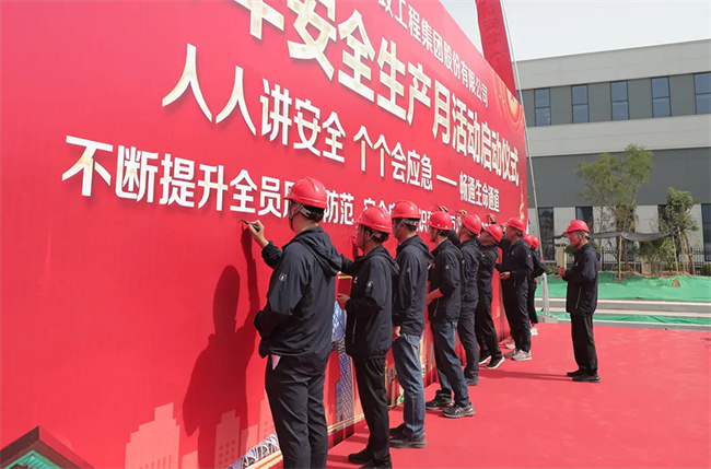 儀式上,集團(tuán)總經(jīng)理趙瑞生作了安全生產(chǎn)月動員講話,并提出四點(diǎn)要求:一是各單位要繼續(xù)強(qiáng)化安全意識,壓實(shí)安全責(zé)任,提升一把手安全管理維度,細(xì)分建設(shè)領(lǐng)域,抓好安全雙重預(yù)防管理機(jī)制。有效實(shí)現(xiàn)高質(zhì)量發(fā)展與高水平安全良性互動,達(dá)到發(fā)展和安全動態(tài)平衡;二是強(qiáng)調(diào)安全工作的事前管控,充分發(fā)揮EPC總承包模式優(yōu)勢,尤其是從設(shè)計、施工方案著手,更加合理部署,科學(xué)組織,從安全的角度落實(shí)好每一道工序、分項、分部施工內(nèi)容;三是進(jìn)一步規(guī)范項目施工作業(yè)現(xiàn)場的文明施工和各生產(chǎn)企業(yè)的7S管理制度,通過有序生產(chǎn)和文明施工行為,保障所有從業(yè)人員的人身財產(chǎn)安全,踐行綠色化發(fā)展、標(biāo)準(zhǔn)化實(shí)施、精細(xì)化管理;四是進(jìn)一步加強(qiáng)各類安全設(shè)施的硬件投入,從根本上筑牢安全生產(chǎn)的底線保障,切實(shí)消除安全隱患。