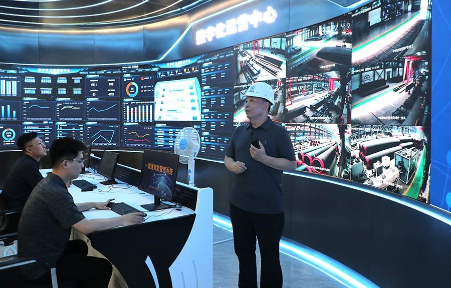 螺旋管和保溫管全自動智能生產(chǎn)線車間,李云峰書記一行詳細了解設備生產(chǎn)運行情況和數(shù)據(jù)中心建設情況,并主動詢問公司技術研發(fā)、鋼結構橋梁、裝配式鋼結構、螺旋管和保溫管等產(chǎn)品應用及市場銷售情況。在公司數(shù)字化運營管理平臺大屏幕前,李云峰認真聆聽曹召成關于一鍵通智能管理系統(tǒng)平臺的匯報,并仔細觀看AI排版信息化管理平臺。欣聞該平臺已投入使用,能一鍵實現(xiàn)產(chǎn)品設計、材料排版、生產(chǎn)過程、產(chǎn)品運輸、項目施工等環(huán)節(jié)的信息追溯和智能管控時,李云峰詳細詢問該平臺對企業(yè)智能管理、產(chǎn)品品質(zhì)、工作效率及降本增效等方面帶來的提升,對公司聚焦數(shù)字賦能,積極、高效打造“一體化三級可視化”運營中心的創(chuàng)新舉措給予高度肯定,并對管理平臺投入運營后取得的成果表示充分認可。李云峰對公司加強與各大高校、科研機構合作,積極引進優(yōu)秀人才,推動產(chǎn)學研一體化發(fā)展,并結合本地產(chǎn)業(yè)發(fā)展實際,加強科技創(chuàng)新,開拓改造傳統(tǒng)產(chǎn)業(yè)新途徑,發(fā)展新質(zhì)生產(chǎn)力,敏銳把握數(shù)字賦能發(fā)展趨勢,抓住機遇、搶占先機,結合新技術對傳統(tǒng)優(yōu)勢產(chǎn)業(yè)進行改造,促進傳統(tǒng)建筑產(chǎn)業(yè)發(fā)展向高端化、綠色化、智能化方向邁進做出的有效探索給予高度贊揚。