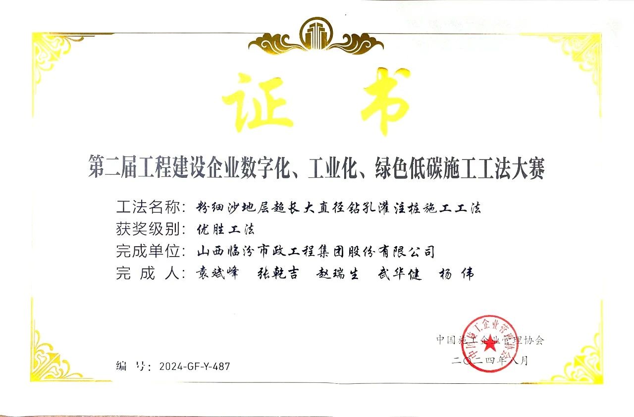 工程建設(shè)企業(yè)數(shù)字化、工業(yè)化、綠色低碳施工工法大賽由中國(guó)施工企業(yè)管理協(xié)會(huì)組織開(kāi)展,旨在推動(dòng)工程建設(shè)行業(yè)的技術(shù)創(chuàng)新與進(jìn)步,鼓勵(lì)企業(yè)將先進(jìn)的數(shù)字化技術(shù)、高效的工業(yè)化手段以及可持續(xù)的綠色低碳理念融入到工程建設(shè)的每個(gè)環(huán)節(jié)當(dāng)中,引領(lǐng)工程建設(shè)行業(yè)朝著更加智能、高效、環(huán)保的方向發(fā)展,從而提升整個(gè)行業(yè)的核心競(jìng)爭(zhēng)力。自今年2月第二屆大賽開(kāi)賽以來(lái),行業(yè)企業(yè)廣泛參與,經(jīng)過(guò)形式審查、初審、復(fù)賽、決賽及社會(huì)公眾投票等環(huán)節(jié),終我集團(tuán)獲得優(yōu)勝工法1項(xiàng)。
